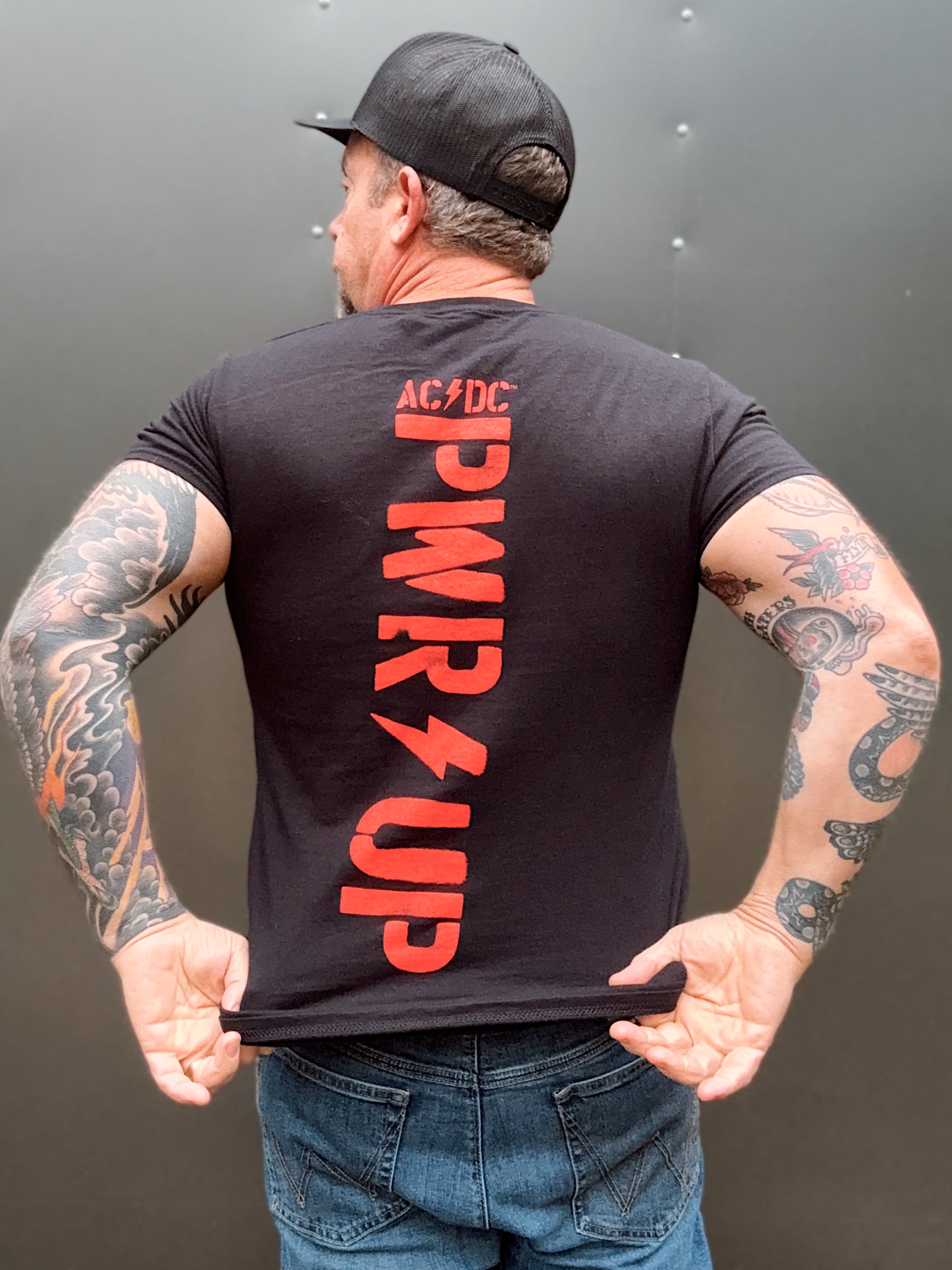 ACDC's pump up refers to their 2020 album and the origin of their band name. They got the name from electricity AC/DC "alternating current/direct current'. Representing energy, and power. With a front and back graphic this t-shirt is an easy outfit maker.
