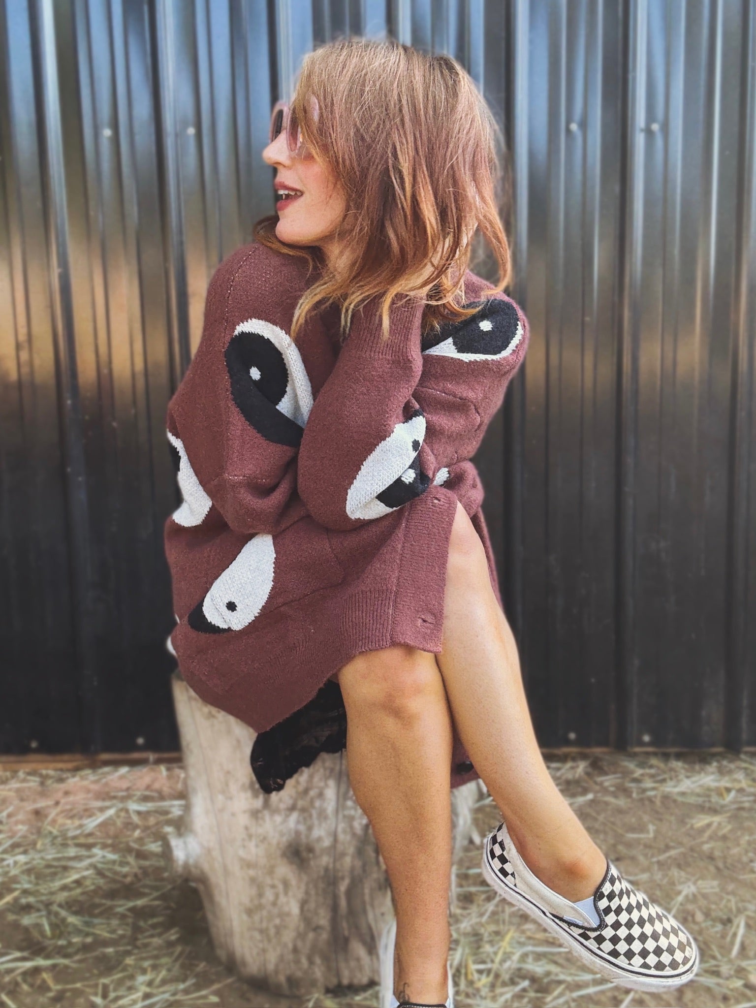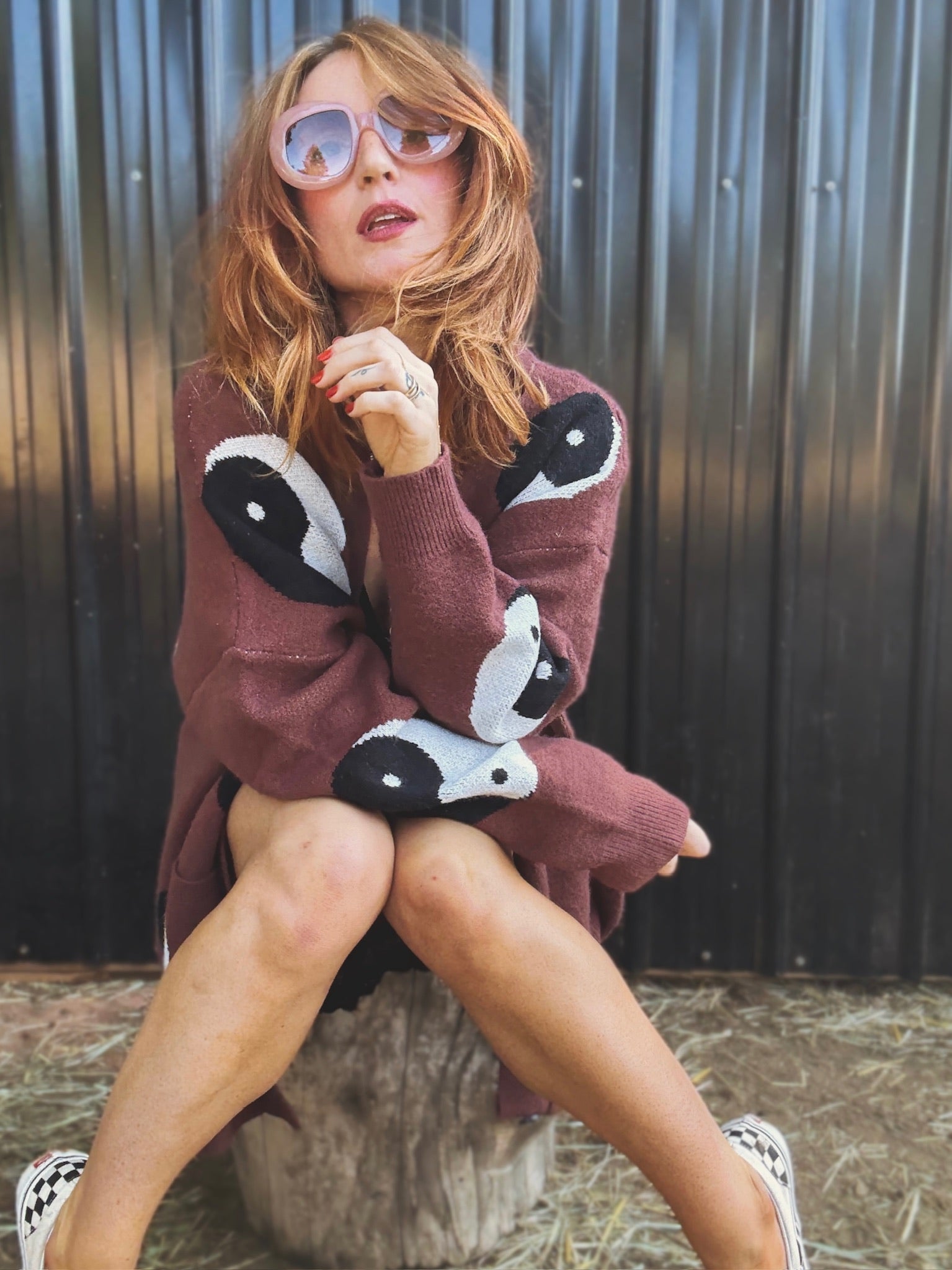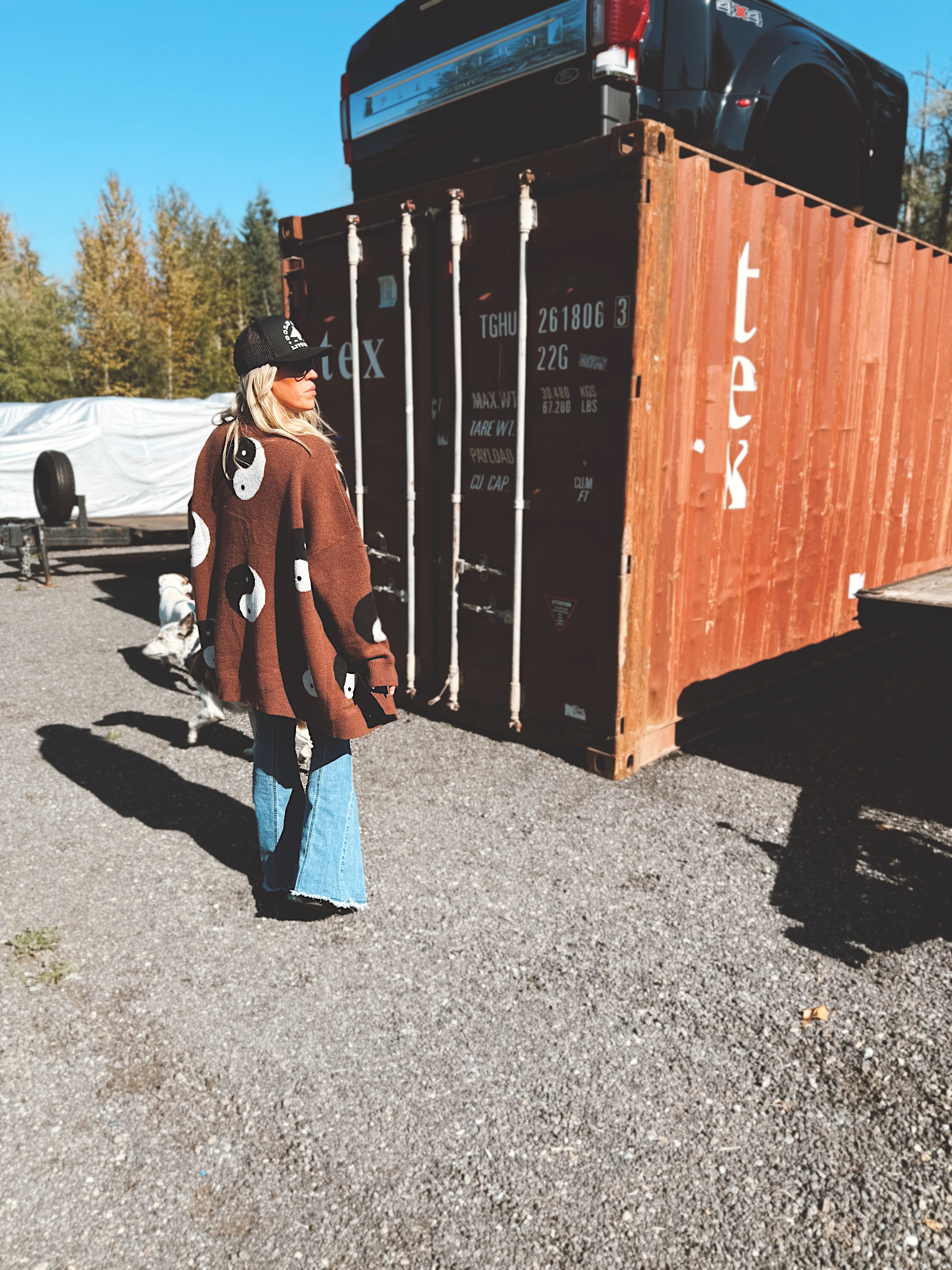 The Good Vibes Cardigan is here for the free spirited soul. Make a statement in this oversized cardigan featuring the yin yang symbol.