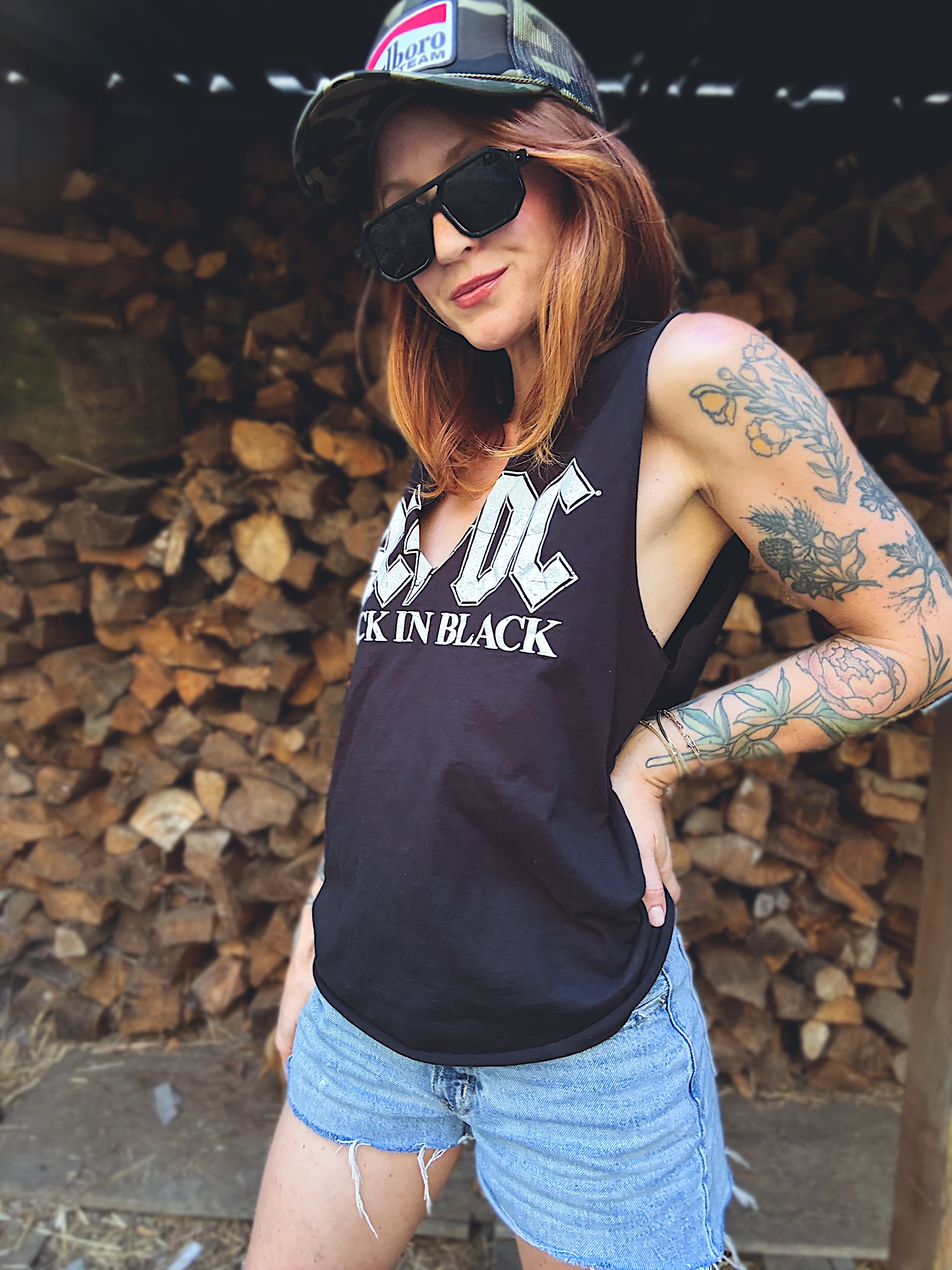 Custom Chop Shop ACDC Back in Black V-neck Tank