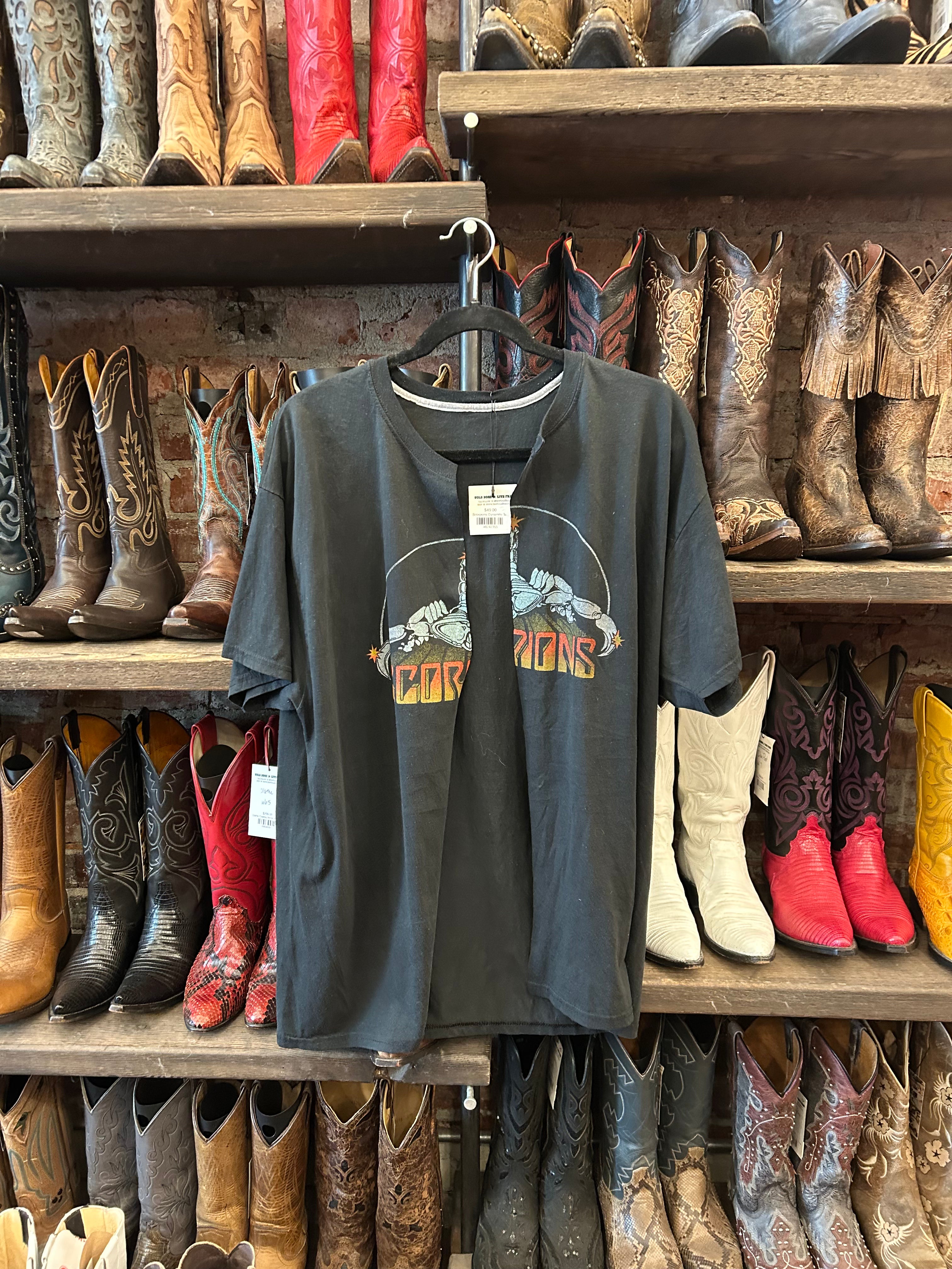 This is the cutest way to wear your band tee as a light weight cover up. We like to pair it with a simple tank top underneath or a vibey corset type top.