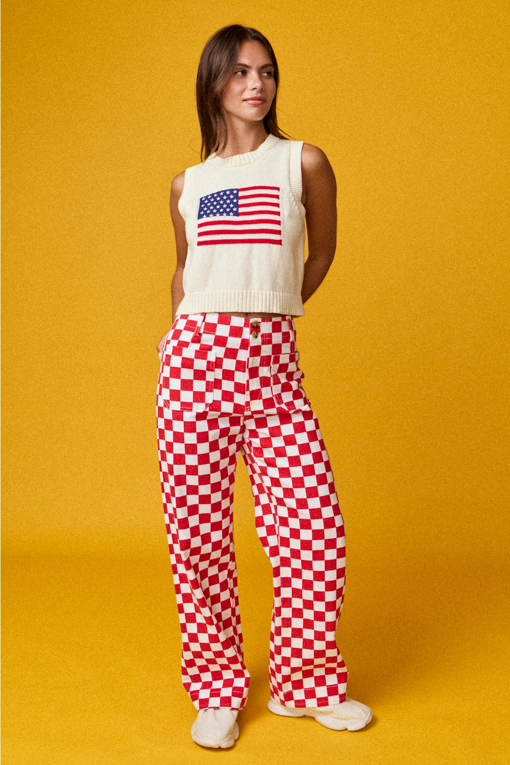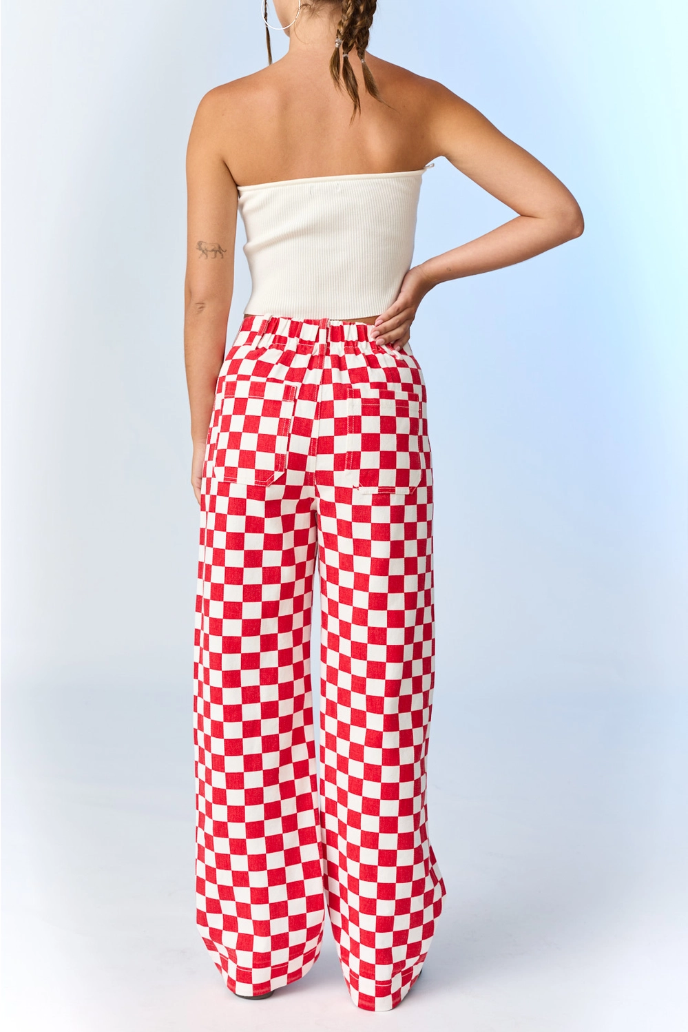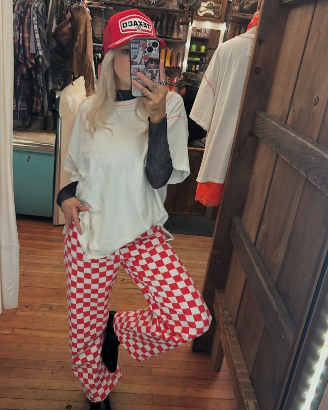 Make a statement in our Bad Reputation denim checkered pants. Designed for fearless style and loud nights. With a high rise fit and classic straight leg silhouette, these pants bring vintage punk energy with modern rock-n-roll edge. The bold black and white checkered pattern turns heads while the structured denim keeps the look sharp and effortless.