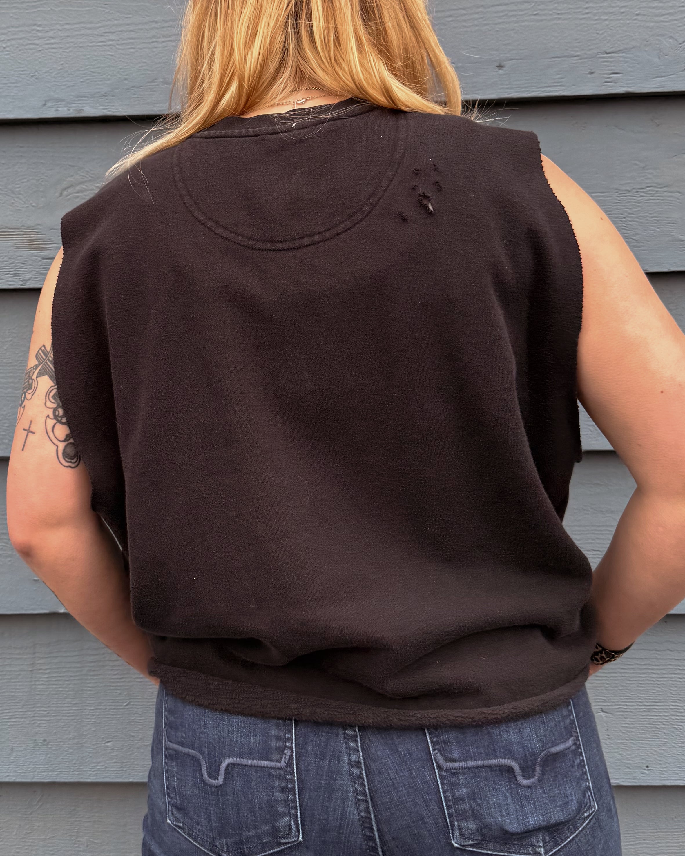 All Items are done in house. Our Chop Shop features one of a kind distressed, bleached, and dyed products done by one of our very own team members!