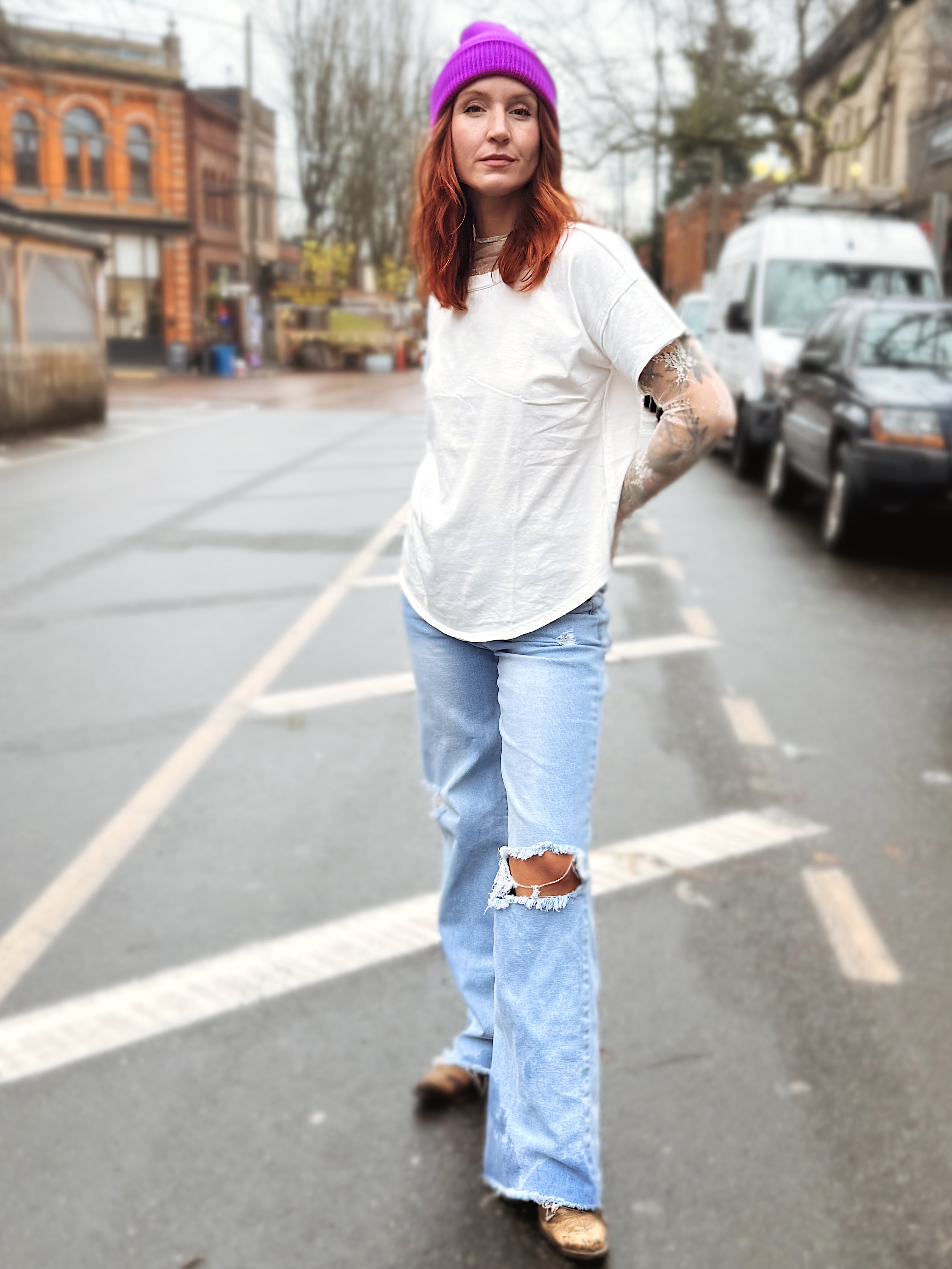 The Walk The Line t-shirt is the one, with an inside out stitched back tag; and a rounded hem this is elevated and classic. We all need one, grab this classic tee. 100% cotton.