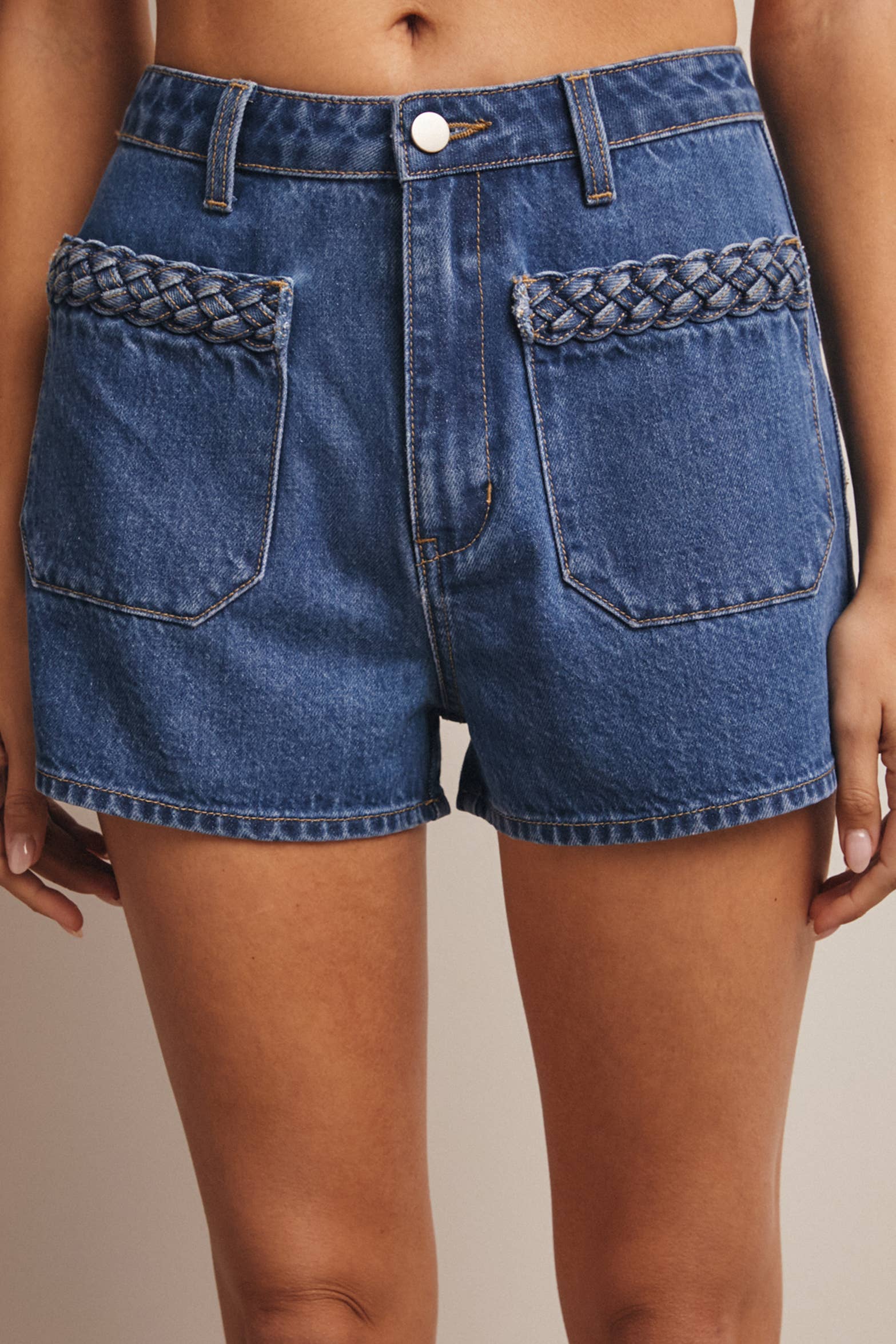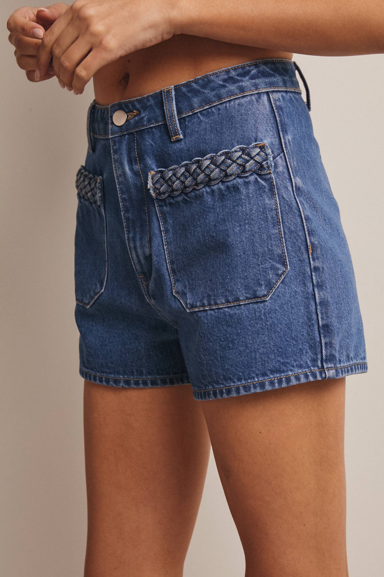 Meet your new everyday summer denim. Our Outlaw Braided Denim Shorts bring vintage western attitude with a cool edge. Made from 100% cotton denim, these shorts feature a classic high rise with unique braided rim detailing along the front pockets to give them a handcrafted, worn in vibe.