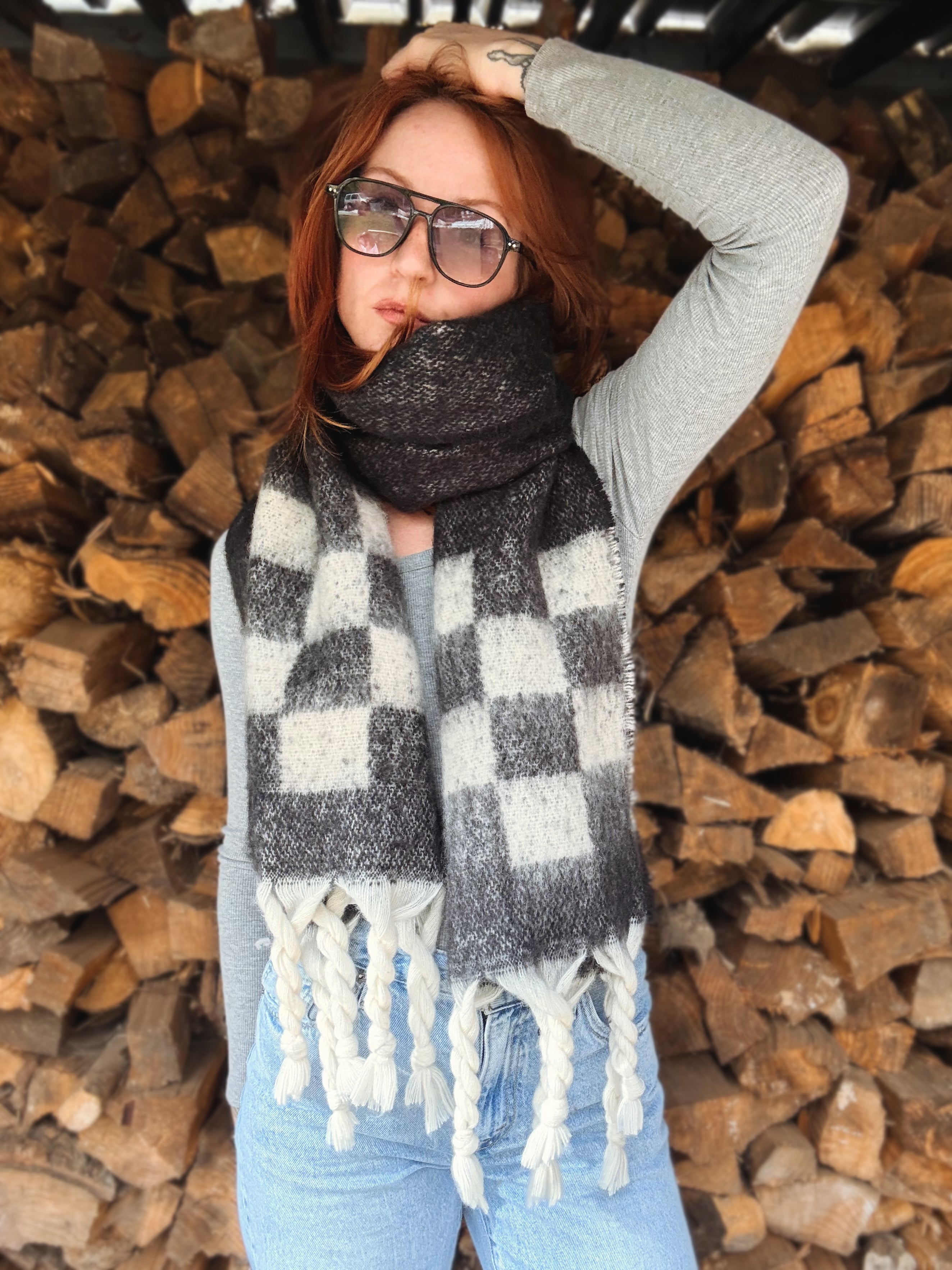 Wrap yourself in comfort and style with this chunky plaid oversized scarf that is a perfect staple for colder seasons.