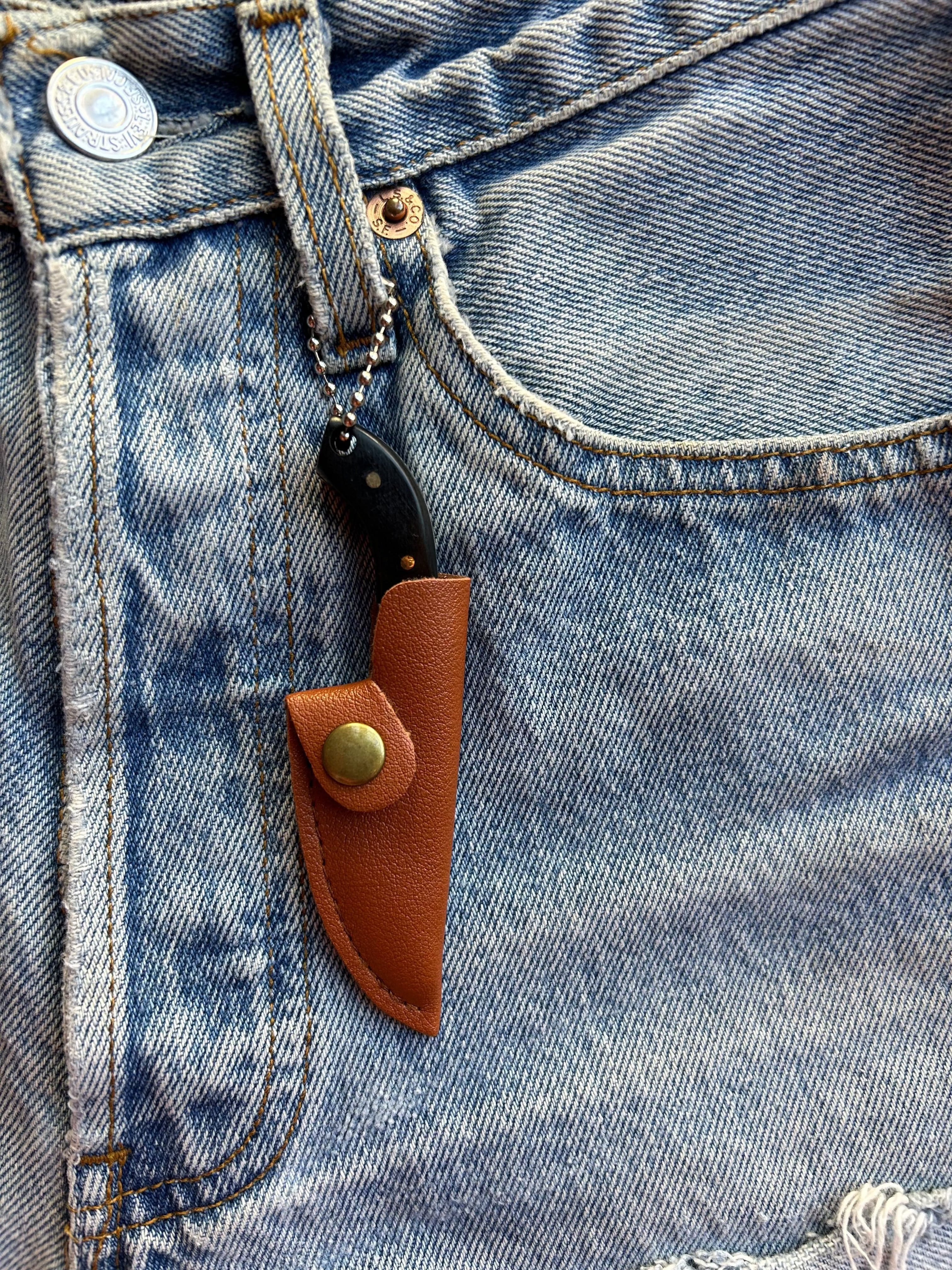 The knife is very sharp and has a keychain, making it suitable for carrying around and self-defense use