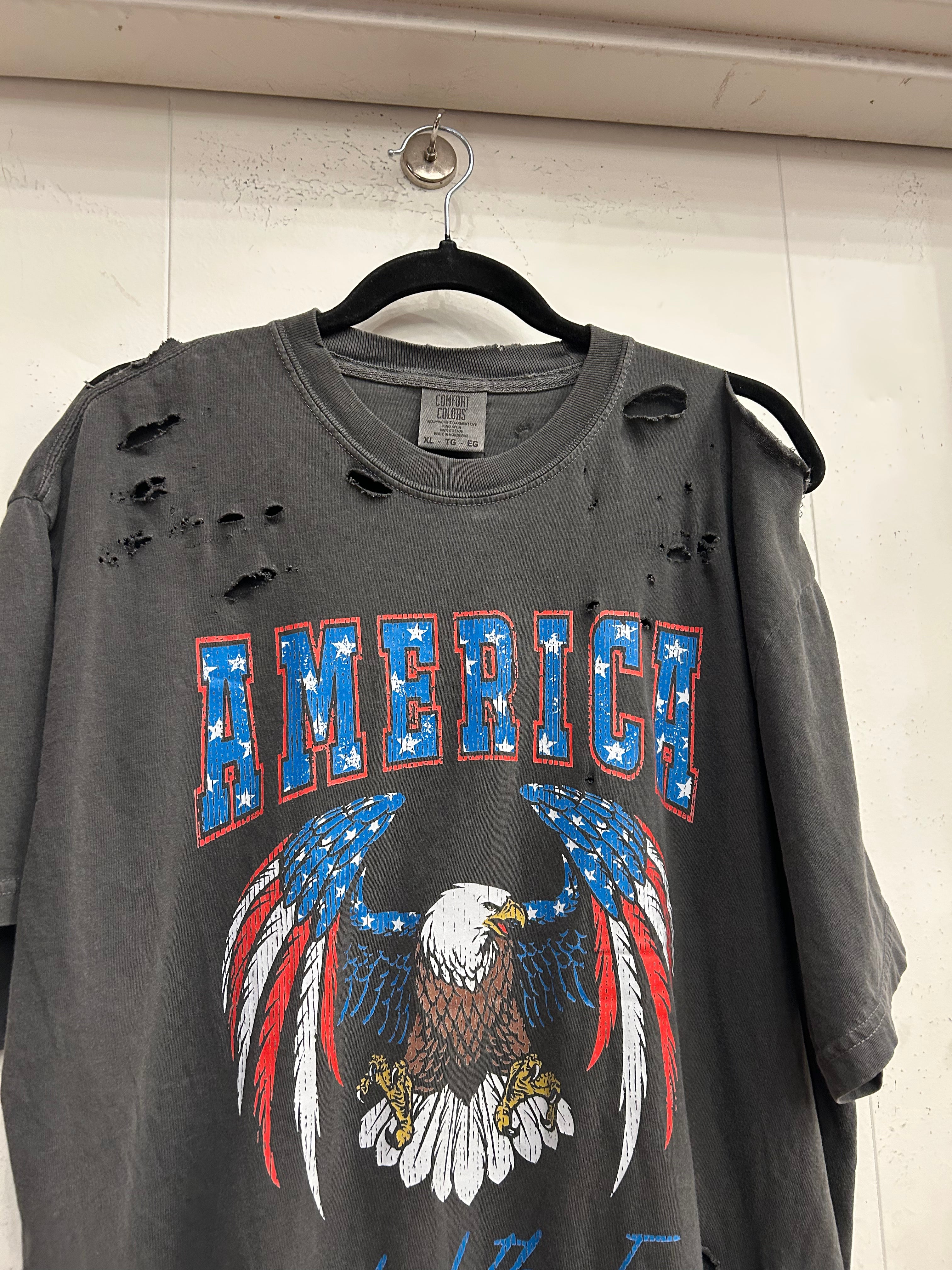All Items are done in house. Our Chop Shop features one of a kind distressed, bleached, and dyed products done by one of our very own team members!