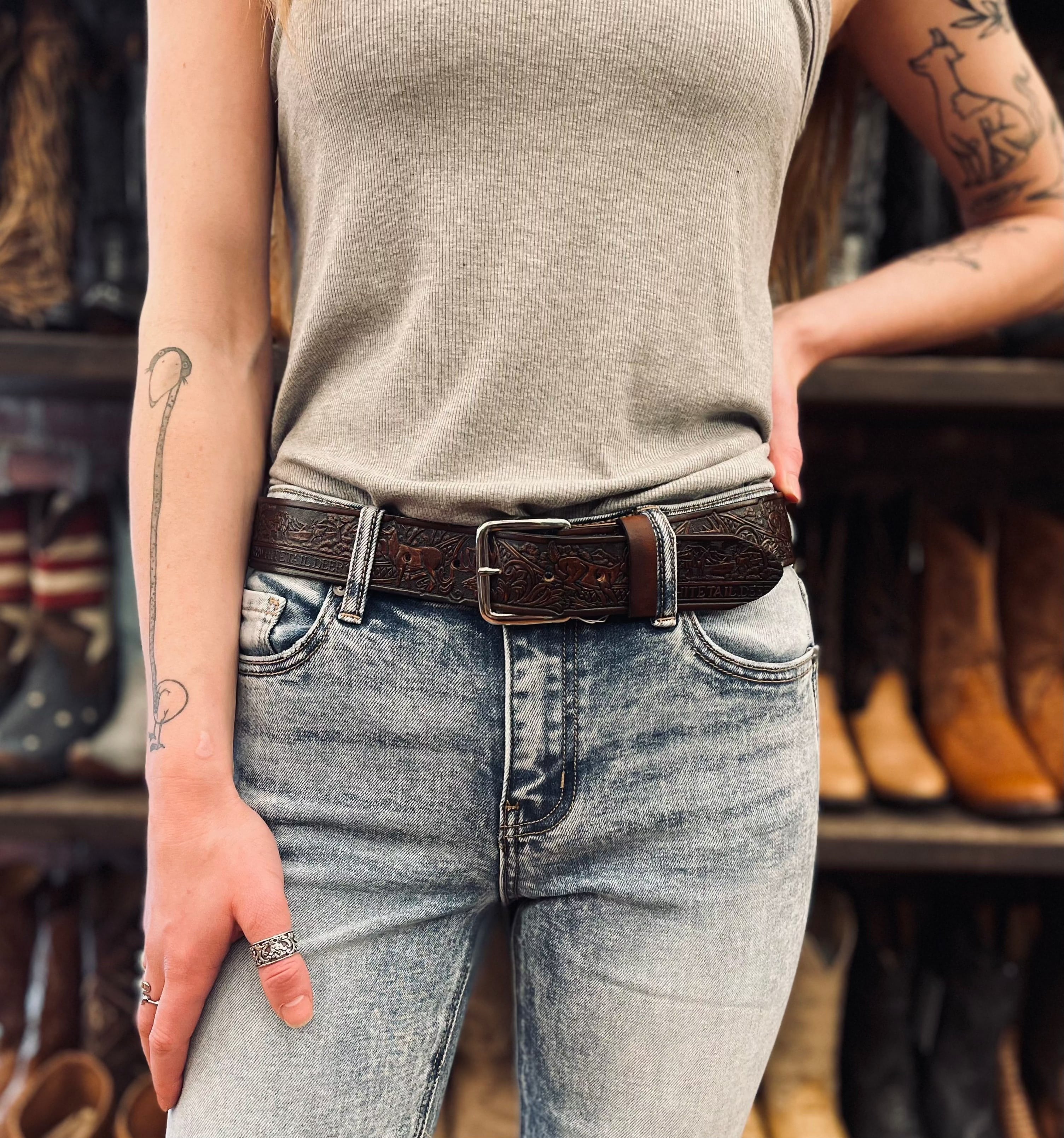 White Tail Deer Leather 1 1/2" Belt