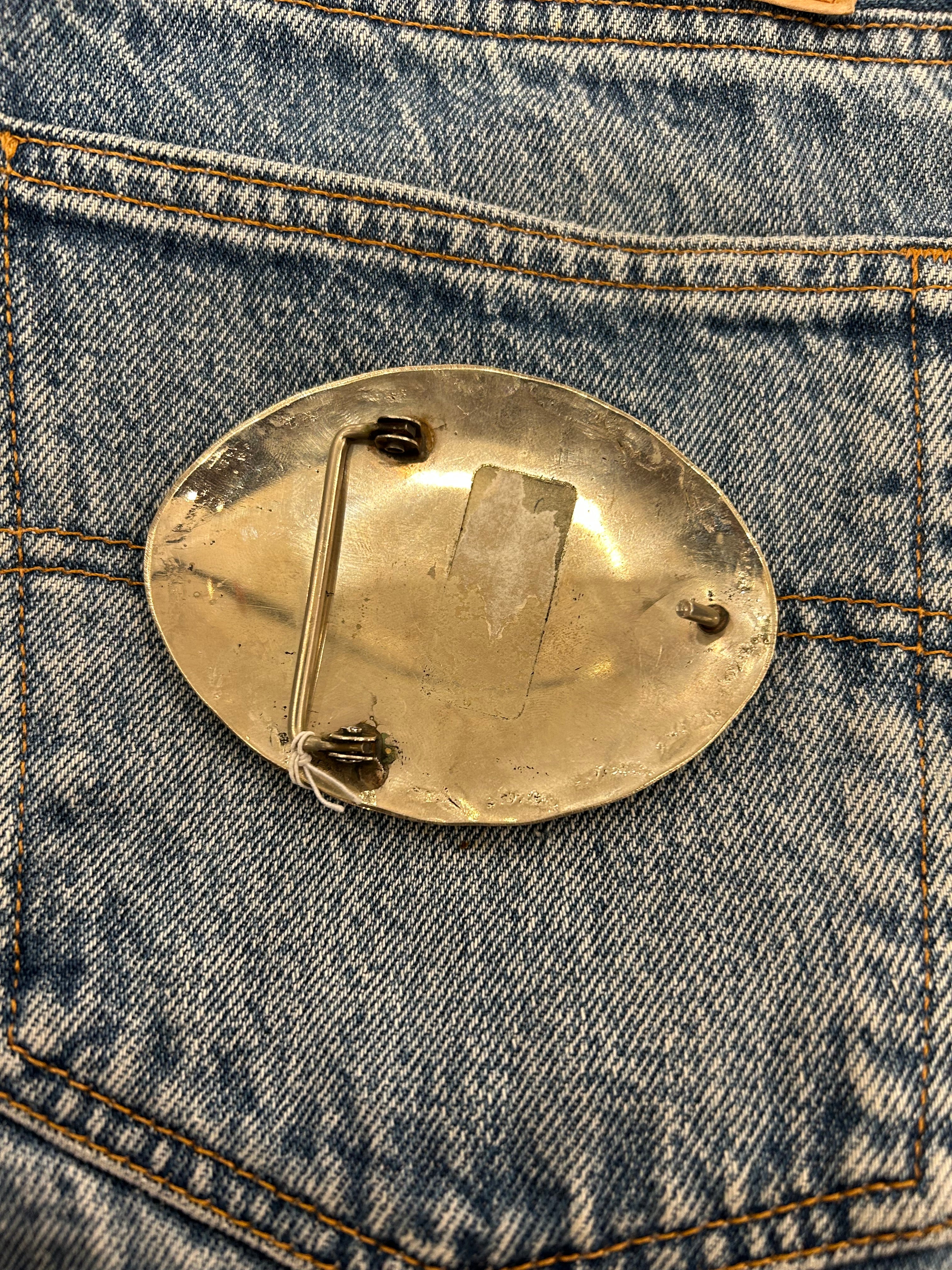 Turquoise, Coral, and Buffalo Pennies Belt Buckle