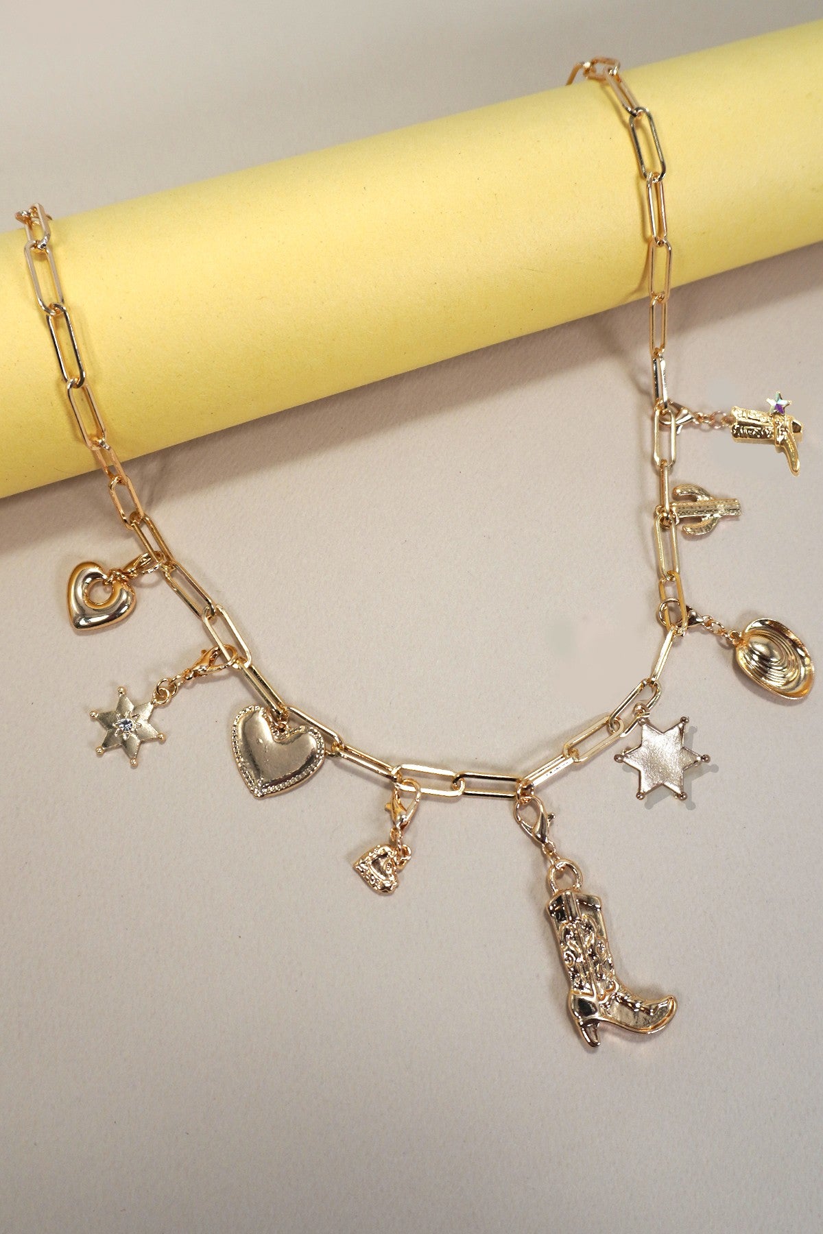 You're going to want to show off this new western charm necklace this summer at every event that you attend! Watch me glisten in the golden hour sun after dancing for hours or jamming out in your car.