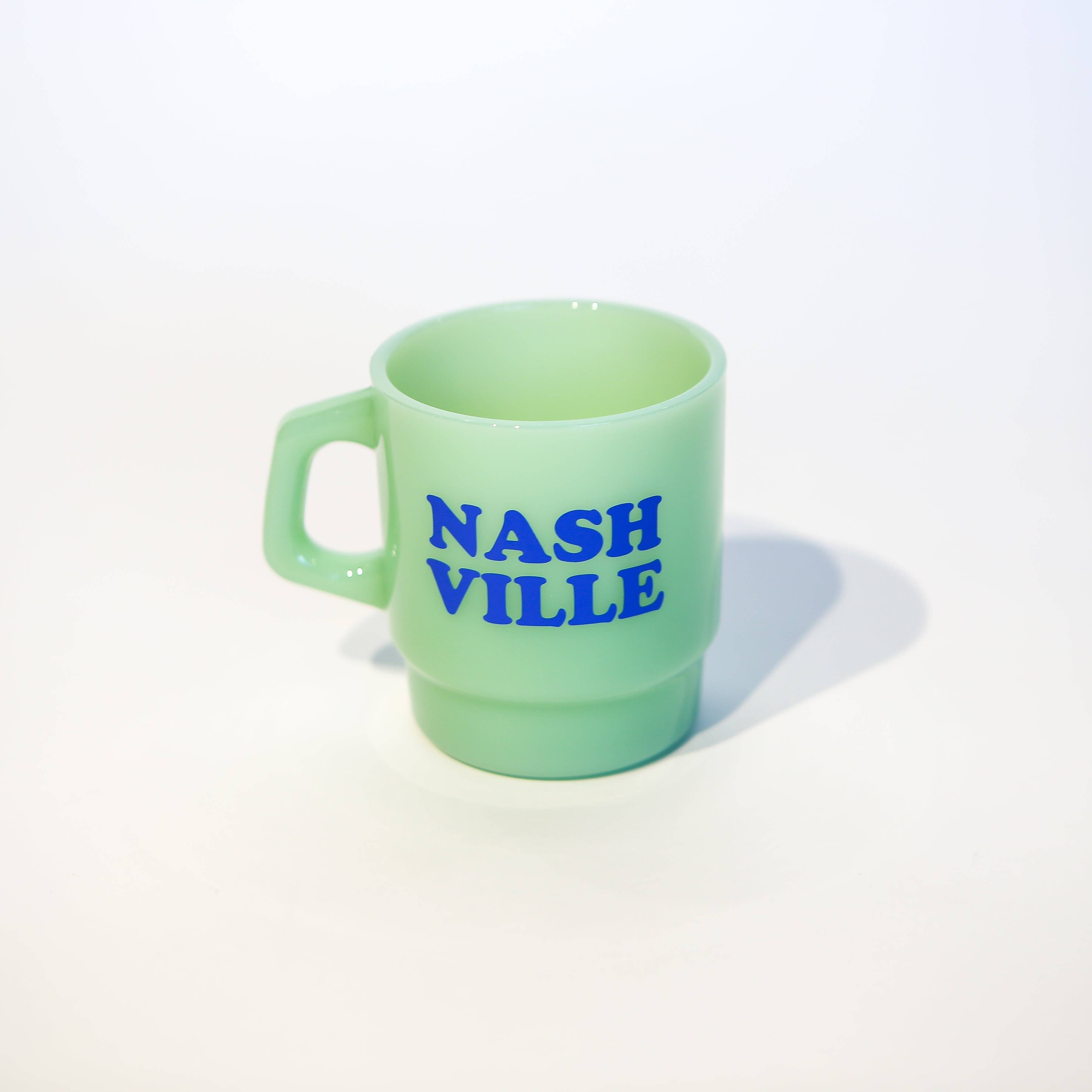Jade green glass with royal print - Retro style stackable mug, 8 oz Capacity - Hand Wash - Each design is sold separately