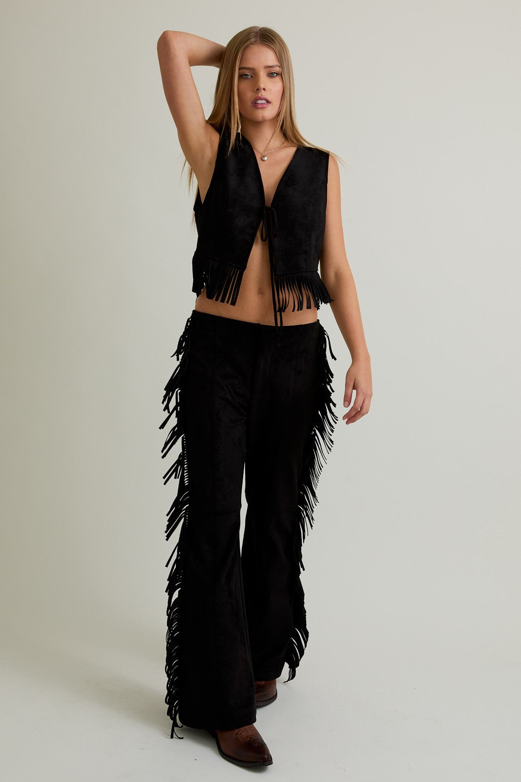 Our I Never Lie Fringe Pants aren't for the tame. These were made for the rebellious brave souls. Throw these on paired with our I Never Lie Vest and make your mark. With this fabric blend, these are ultra stretchy, approved for any adventure.