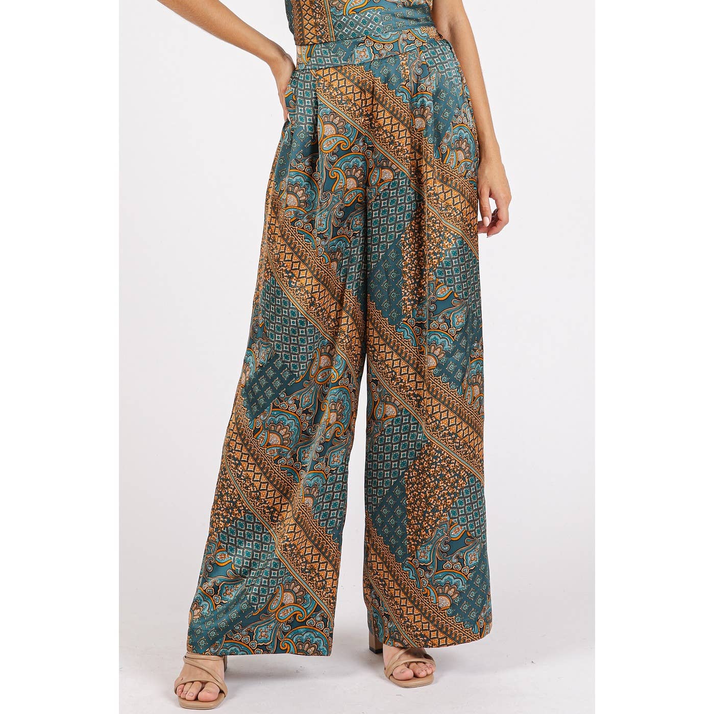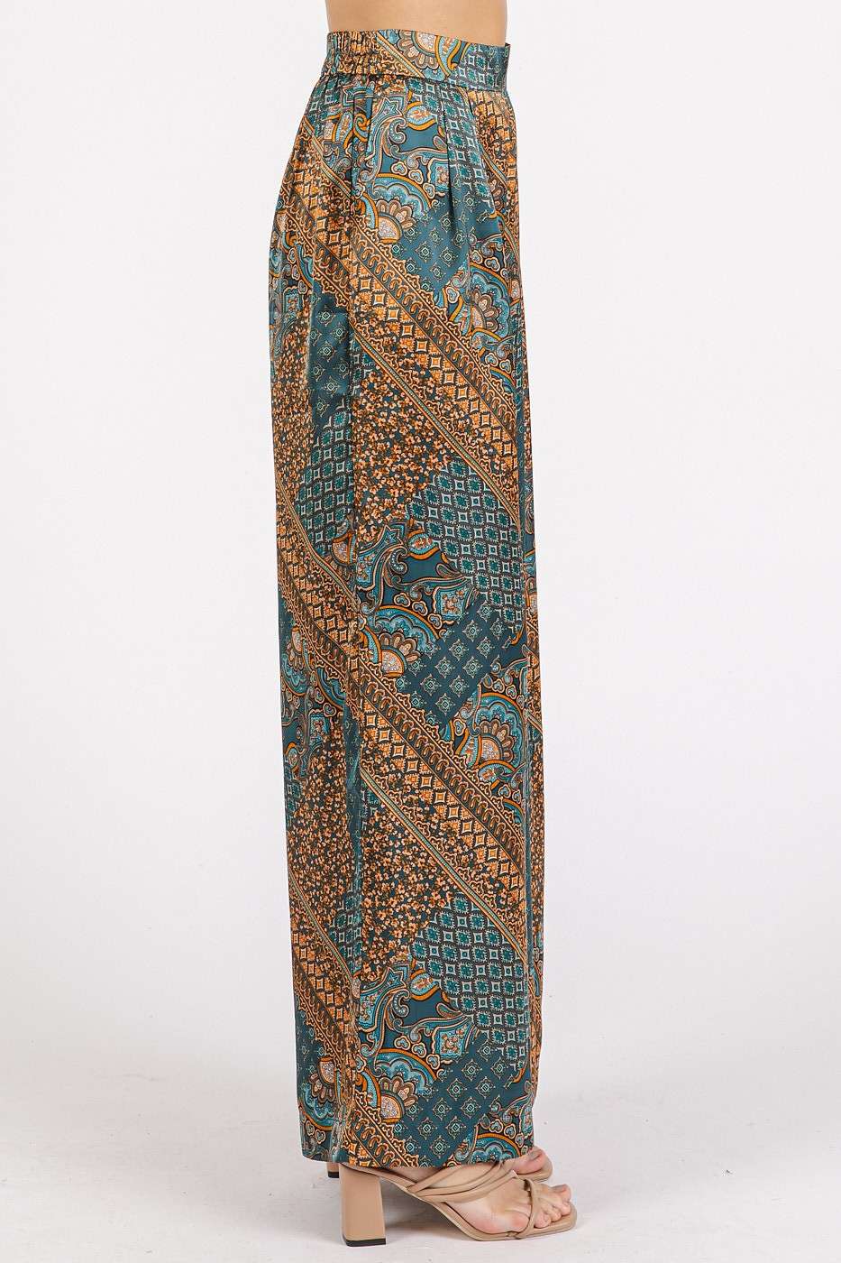 Float through your day in our Into The Sky wide leg satin pants. With a beautiful paisley boho print in cool blue tones. Designed with a relaxed fit and silky smooth feel, these pants bring effortless 70s inspired vibes to any outfit.