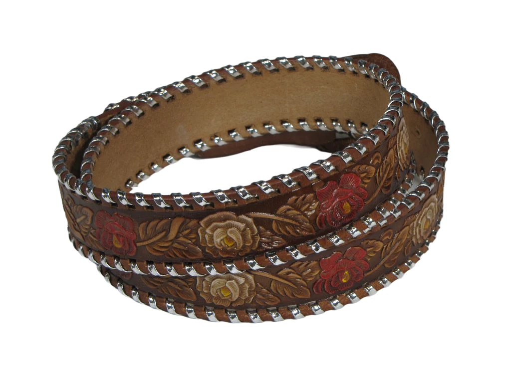 This genuine leather belt is Shenandoah approved to represent their classic song Two Dozen Roses. Proudly made in the USA. Has removable buckle, so you can add your own belt buckle to customize your look.